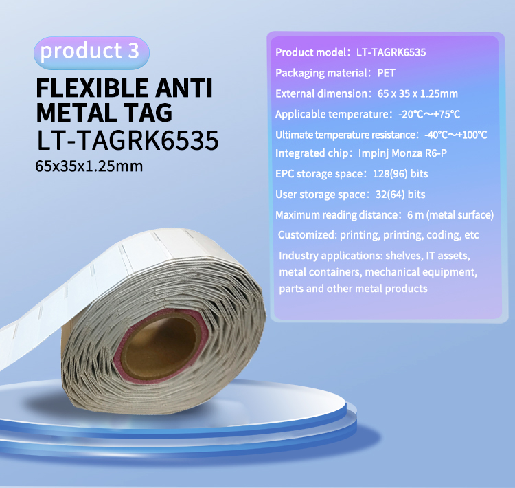 Bendable Metal Ready RFID Soft Touch UHF Anti-metal tag 65*35mm KU7chip Long Last Tag for Steel