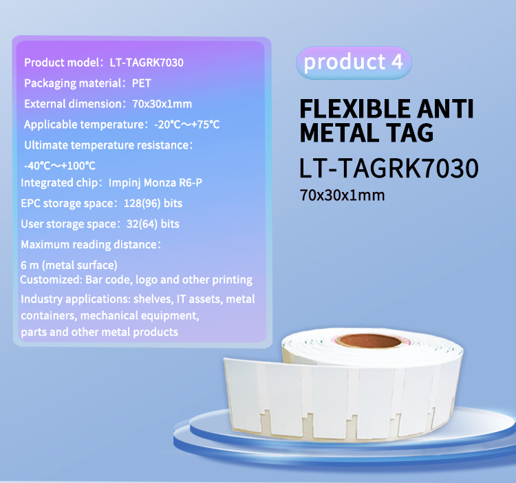 RFID UHF Flexible Anti-Metal Tags for Asset Tracking 915MHz Printable