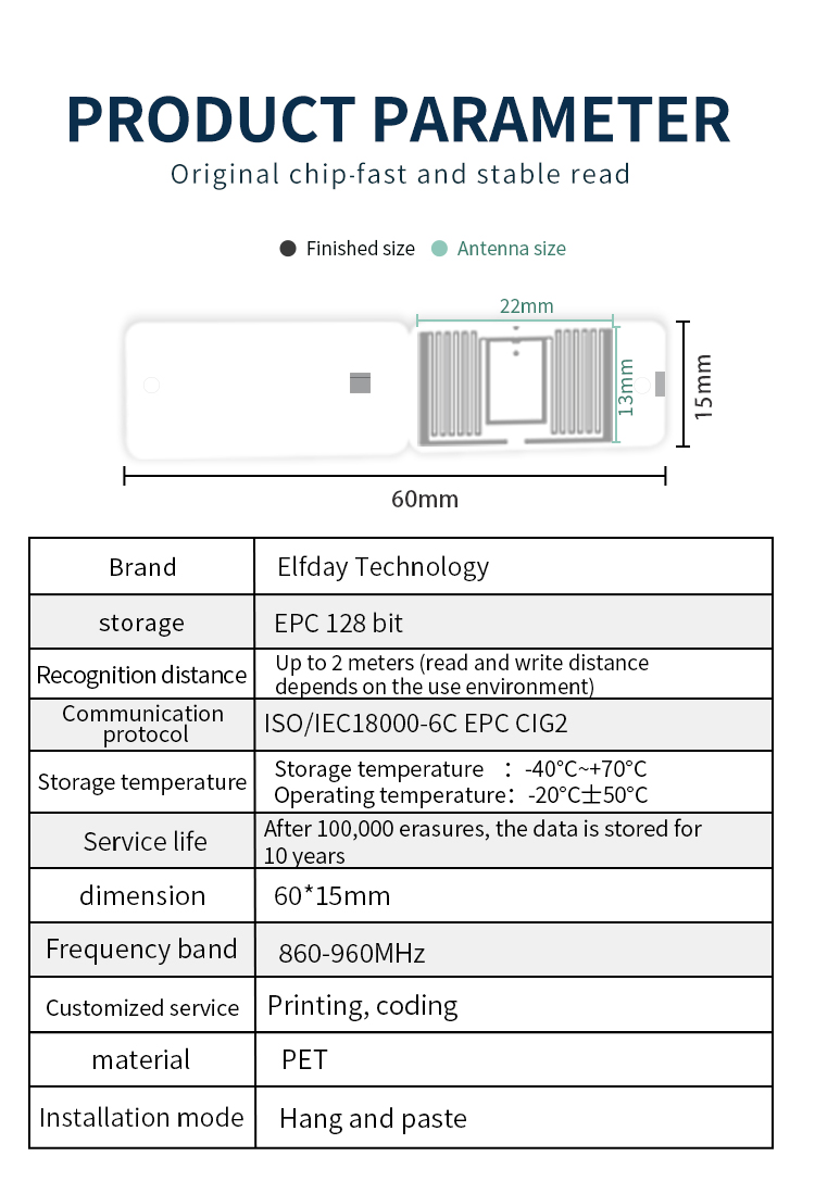 What can RFID UHF tags help you solve?1. RFID tags for rapid retail inventory management of clothing2. RFID clothing tags for quick checkout3. RFID clothing tag with anti counterfeiting function4. RFID clothing tags for warehouse management5. RFID technology inventory to avoid out of stock code6. Anti theft RFID clothing tag7. Quick cash register RFID tag8. RFID tags for quick inventory9. RFID tags can be used in industries with all warehousing functions10. Application: retail, manufacturing, clothing, logistics, e-commerce, auto parts and other industries