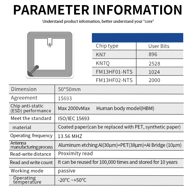 13.56MHz NFC Management Tag 50*50mm FM13HF01N-TSchip High-Frequency Recognition Tear-Resistant Film