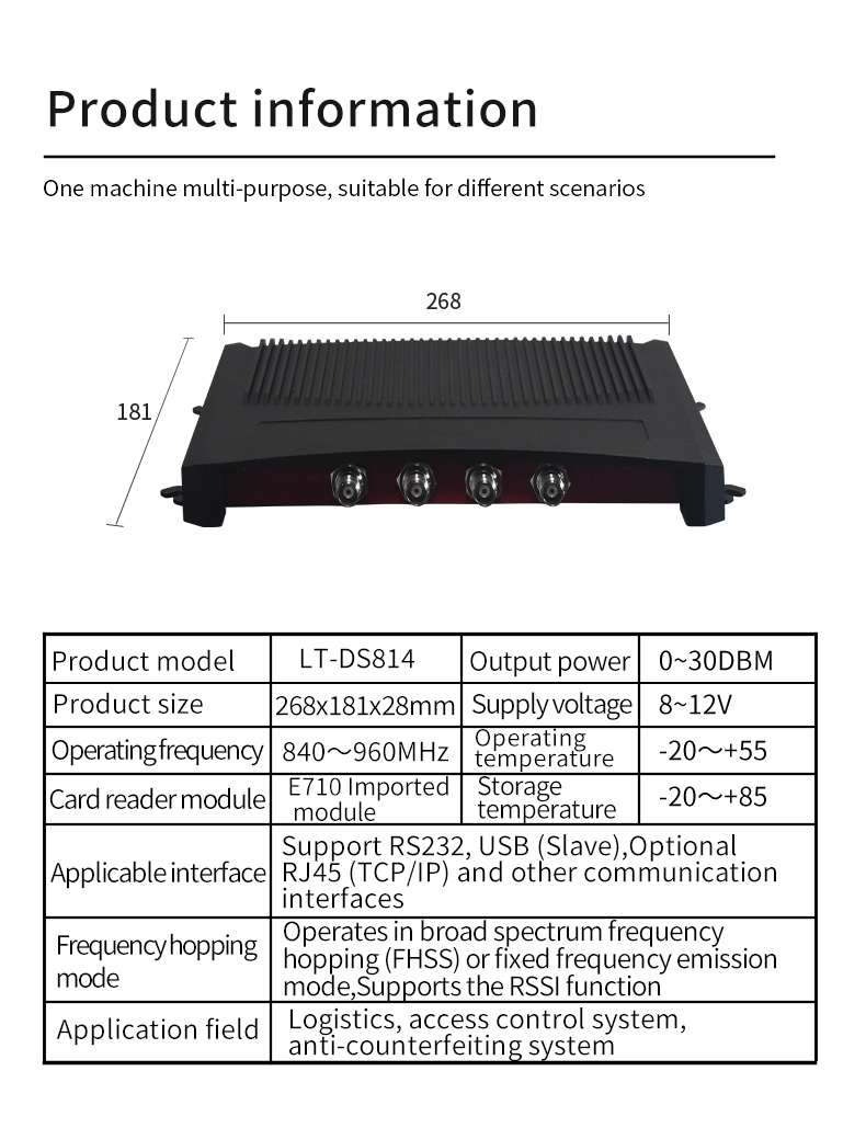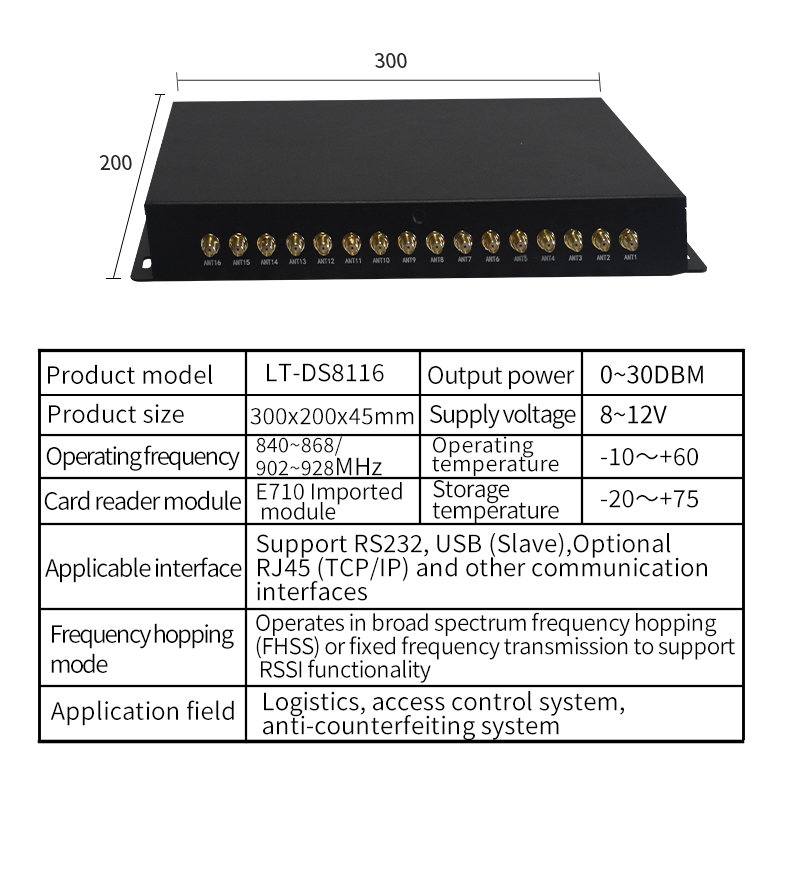 LT-DS8116 Channel 860-960MHz UHF Modular RFID Reader - High-Speed Multi-Protocol