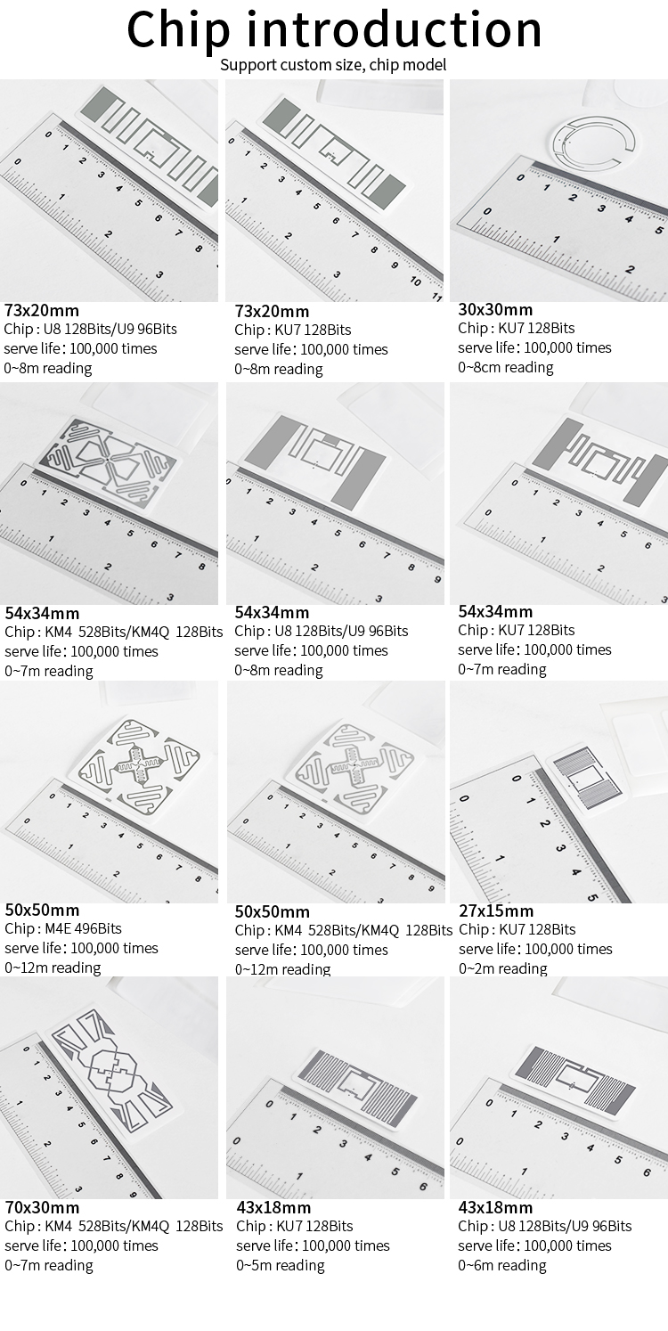 What can RFID UHF tags help you solve?1. RFID tags for rapid retail inventory management of clothing2. RFID clothing tags for quick checkout3. RFID clothing tag with anti counterfeiting function4. RFID clothing tags for warehouse management5. RFID technology inventory to avoid out of stock code6. Anti theft RFID clothing tag7. Quick cash register RFID tag8. RFID tags for quick inventory9. RFID tags can be used in industries with all warehousing functions10. Application: retail, manufacturing, clothing, logistics, e-commerce, auto parts and other industries