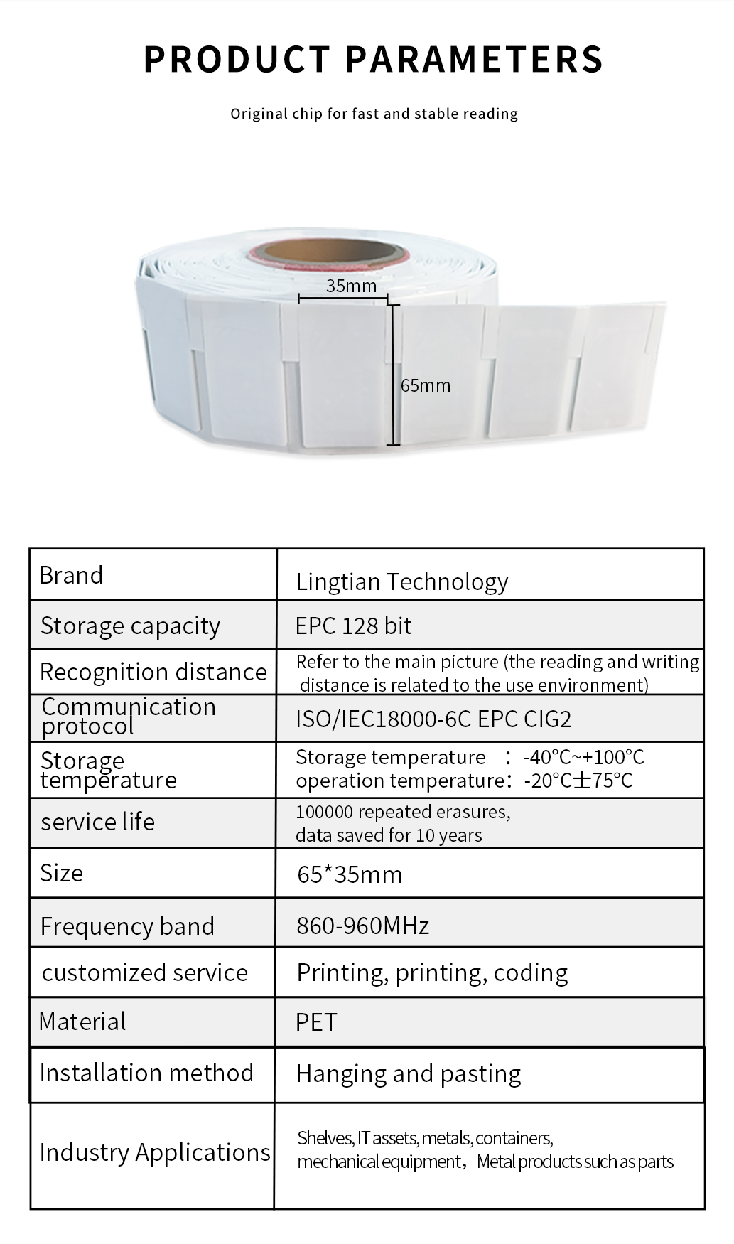 RFID paper label parameters:
