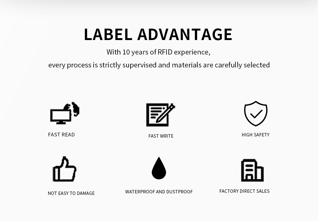 What can RFID UHF tags help you solve?1. RFID tags for rapid retail inventory management of clothing2. RFID clothing tags for quick checkout3. RFID clothing tag with anti counterfeiting function4. RFID clothing tags for warehouse management5. RFID technology inventory to avoid out of stock code6. Anti theft RFID clothing tag7. Quick cash register RFID tag8. RFID tags for quick inventory9. RFID tags can be used in industries with all warehousing functions10. Application: retail, manufacturing, clothing, logistics, e-commerce, auto parts and other industries