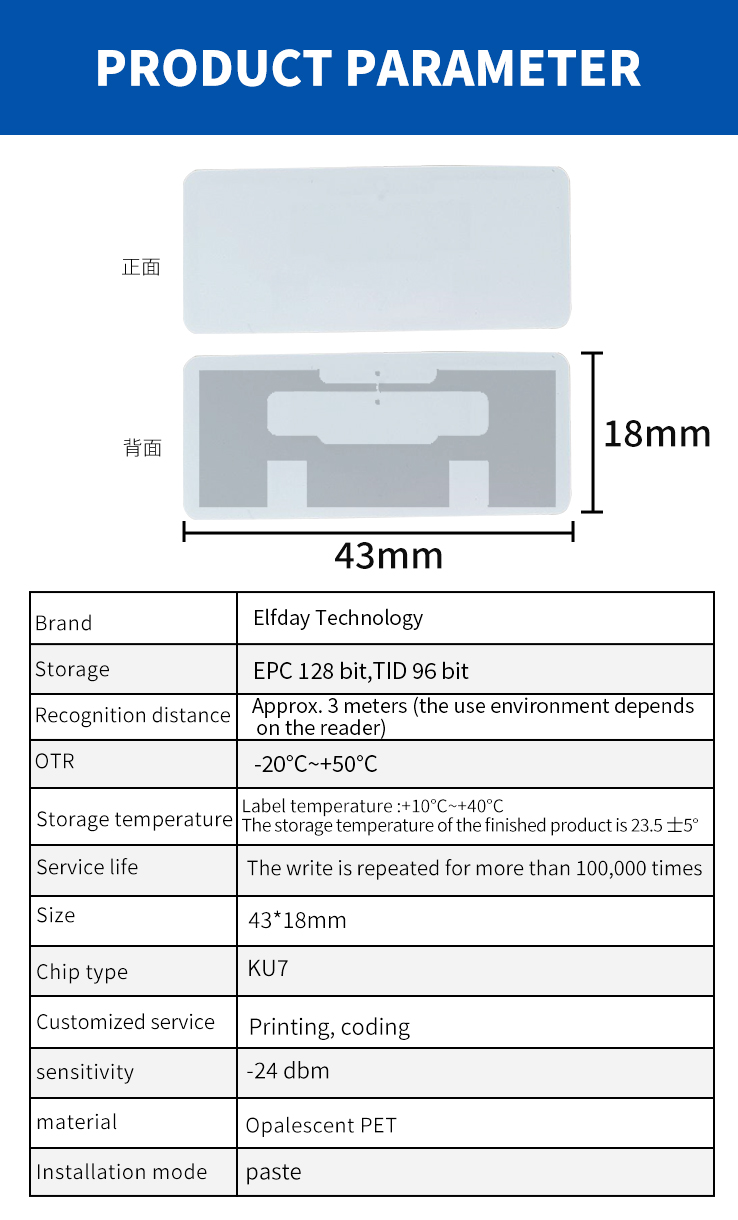 What can RFID UHF tags help you solve?1. RFID tags for rapid retail inventory management of clothing2. RFID clothing tags for quick checkout3. RFID clothing tag with anti counterfeiting function4. RFID clothing tags for warehouse management5. RFID technology inventory to avoid out of stock code6. Anti theft RFID clothing tag7. Quick cash register RFID tag8. RFID tags for quick inventory9. RFID tags can be used in industries with all warehousing functions10. Application: retail, manufacturing, clothing, logistics, e-commerce, auto parts and other industries