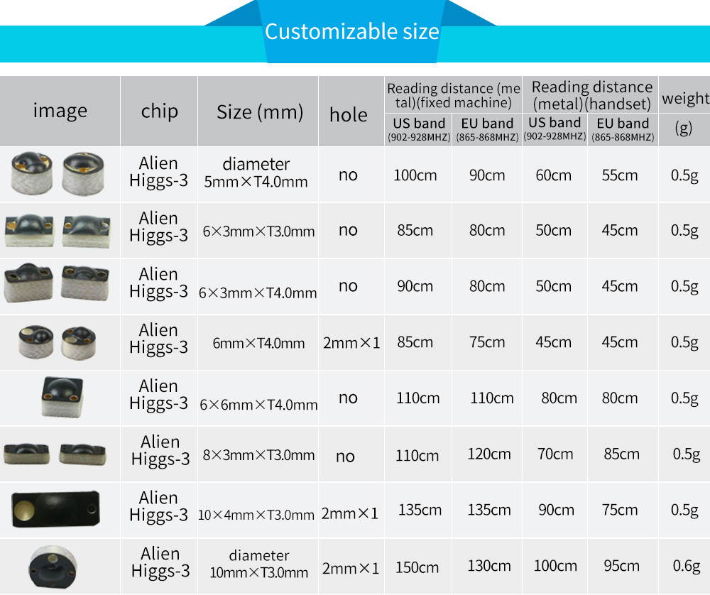 What can RFID UHF tags help you solve?1. RFID tags for rapid retail inventory management of clothing2. RFID clothing tags for quick checkout3. RFID clothing tag with anti counterfeiting function4. RFID clothing tags for warehouse management5. RFID technology inventory to avoid out of stock code6. Anti theft RFID clothing tag7. Quick cash register RFID tag8. RFID tags for quick inventory9. RFID tags can be used in industries with all warehousing functions10. Application: retail, manufacturing, clothing, logistics, e-commerce, auto parts and other industries