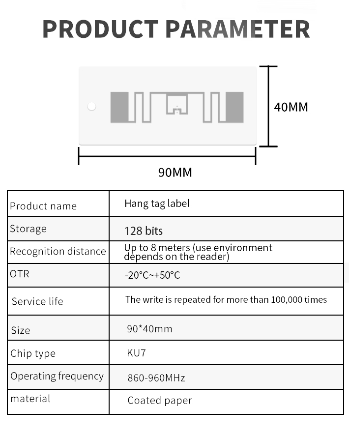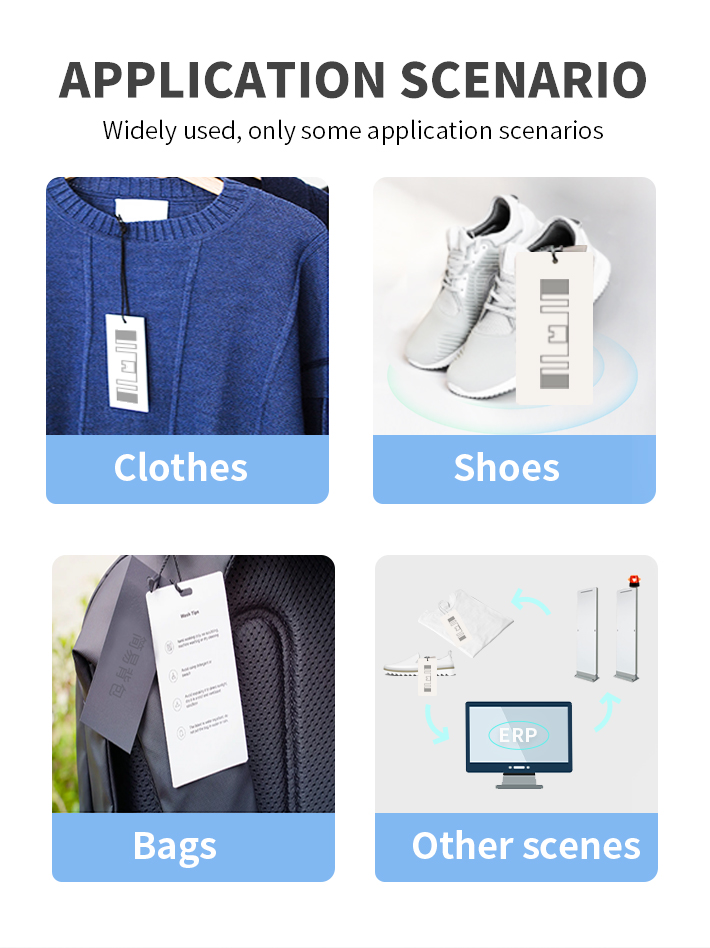 What can RFID UHF tags help you solve?1. RFID tags for rapid retail inventory management of clothing2. RFID clothing tags for quick checkout3. RFID clothing tag with anti counterfeiting function4. RFID clothing tags for warehouse management5. RFID technology inventory to avoid out of stock code6. Anti theft RFID clothing tag7. Quick cash register RFID tag8. RFID tags for quick inventory9. RFID tags can be used in industries with all warehousing functions10. Application: retail, manufacturing, clothing, logistics, e-commerce, auto parts and other industries