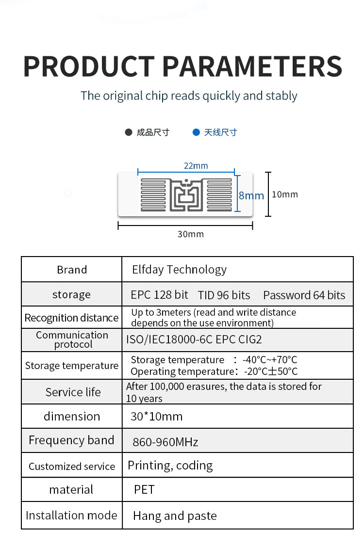 What can RFID UHF tags help you solve?1. RFID tags for rapid retail inventory management of clothing2. RFID clothing tags for quick checkout3. RFID clothing tag with anti counterfeiting function4. RFID clothing tags for warehouse management5. RFID technology inventory to avoid out of stock code6. Anti theft RFID clothing tag7. Quick cash register RFID tag8. RFID tags for quick inventory9. RFID tags can be used in industries with all warehousing functions10. Application: retail, manufacturing, clothing, logistics, e-commerce, auto parts and other industries